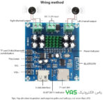 وقتی ماژول روشن است، چراغ‌های سبز و آبی روشن هستند. وقتی بلوتوث / فلش درایو USB / کارت TF متصل است، چراغ آبی چشمک می‌زند و نشان می‌دهد که کار می‌کند.