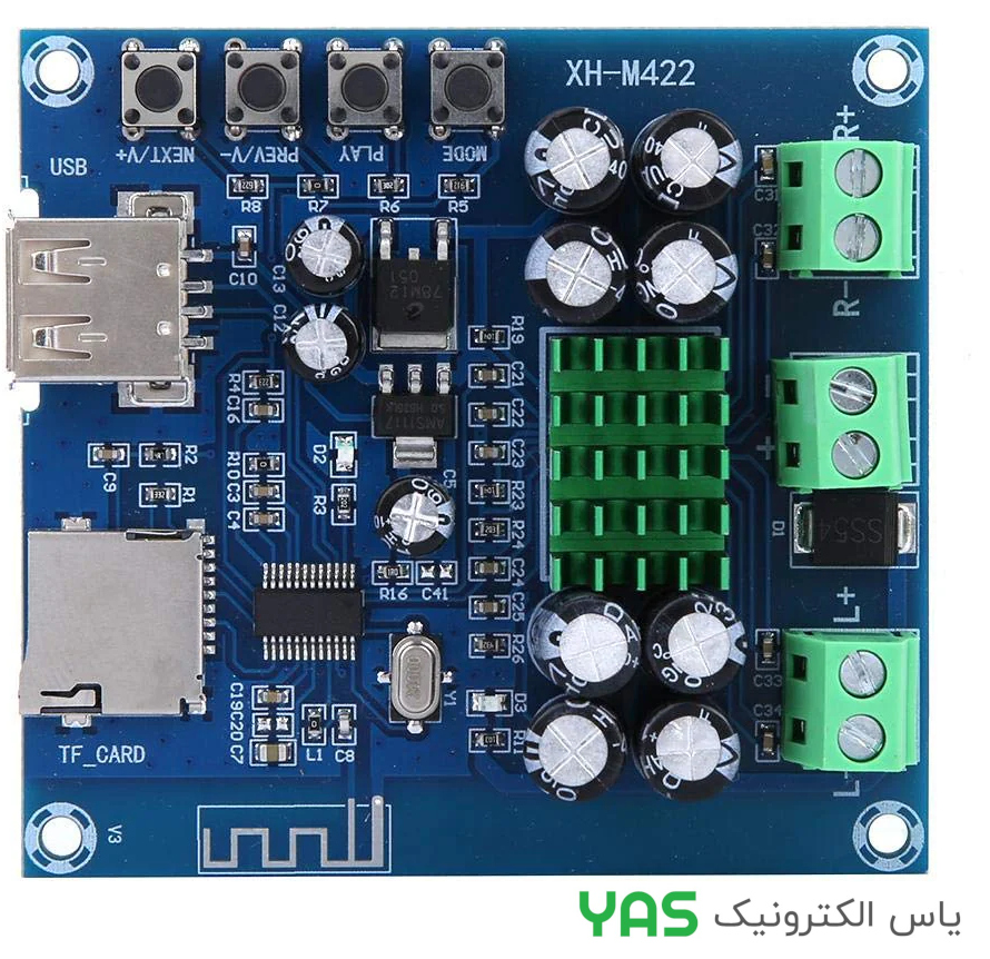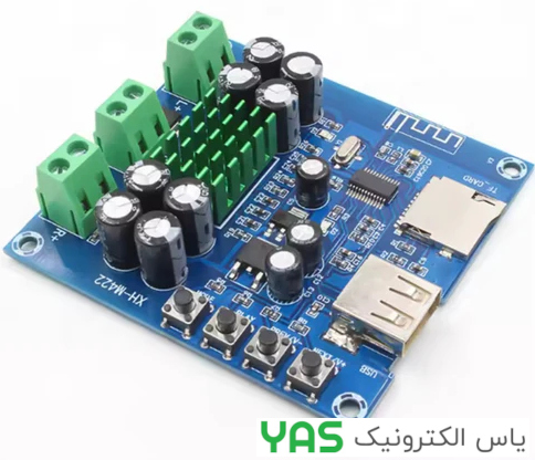 ماژول آمپلی فایر بلوتوث 4.0 با توان 2*50 وات و ولتاژ 12-24 ولت DC مدل XH-M422 TPA3116D2 به همراه پخش کننده کارت حافظه TF و بلوتوث U-Disk مدل U-Disk