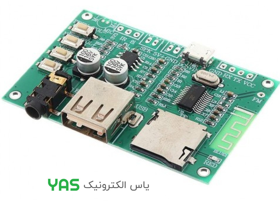 ماژول پخش موسیقی و صدای بلوتوث 3W دو حالته با ورودی AUX، کارت حافظه Micro SD و USB به همراه مدار بیسیم BT201