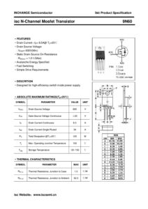 ماسفت 9N60 یک نوع ترانزیستور MOSFET قدرتی ولتاژ بالا مناسب برای کاربردهای سوئیچینگ و منابع تغذیه صنعتی است.