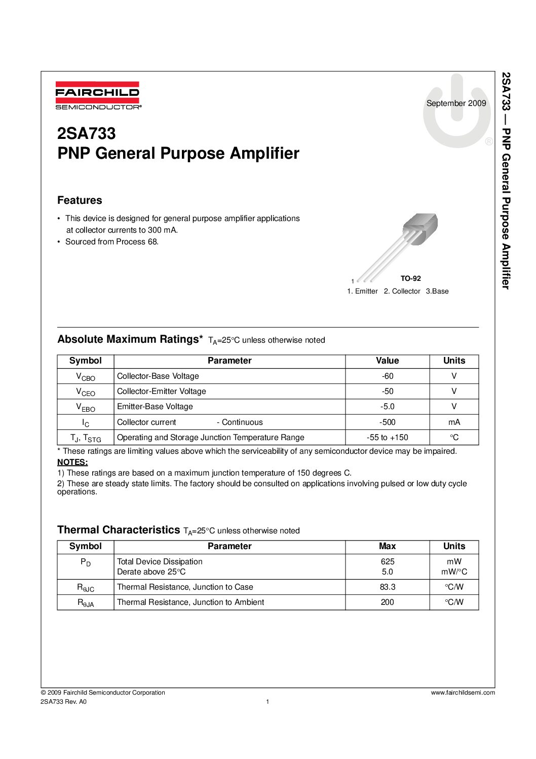 ترانزیستور 2SA733 یک ترانزیستور سیگنال کوچک از نوع PNP است که برای کاربردهای تقویت سیگنالهای ضعیف، طبقات پیشتقویتکننده، مدارات صوتی و مدارهای عمومی الکترونیکی طراحی شده است. این قطعه به دلیل نویز پایین، پایداری خوب و مصرف توان کم، انتخابی مناسب برای مدارهای حساس و تقویتکنندههای صوتی میباشد.