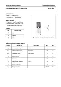 ترانزیستور 2SB778 یک ترانزیستور قدرتی از نوع PNP است که برای کاربردهای تقویت توان، درایو بارهای متوسط، مسیر‌دهی جریان و مدارهای صوتی طراحی شده است. این ترانزیستور با توان تلفاتی بالا، جریان کلکتور مناسب و ولتاژ شکست قابل‌قبول، گزینه‌ای مطمئن برای استفاده در منابع تغذیه، تقویت‌کننده‌های صوتی کلاس AB و سیستم‌های صنعتی محسوب می‌شود.