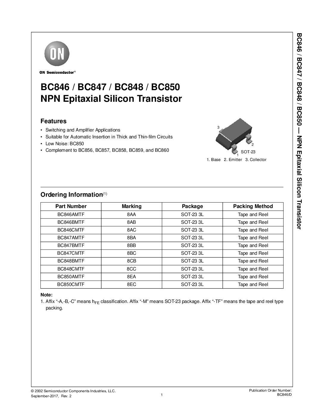 دیتاشیت ترانزیستور BC847 :