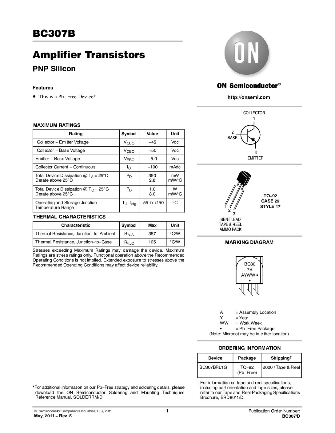 ترانزیستور BC307 یک ترانزیستور قدرتی از نوع PNP است که برای کاربردهای تقویت سیگنال، سوئیچینگ و مدارهای کممصرف طراحی شده است. این قطعه با جریان کلکتور مناسب، بهره جریان متوسط و پایداری حرارتی خوب، گزینهای قابل اعتماد برای مدارهای آنالوگ، دیجیتال و آموزشی محسوب میشود.