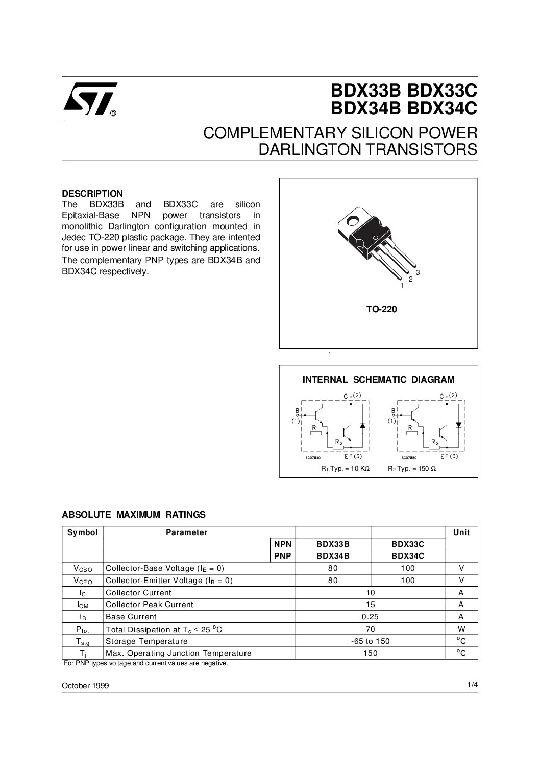 دیتاشیت ترانزیستور BDX34 :