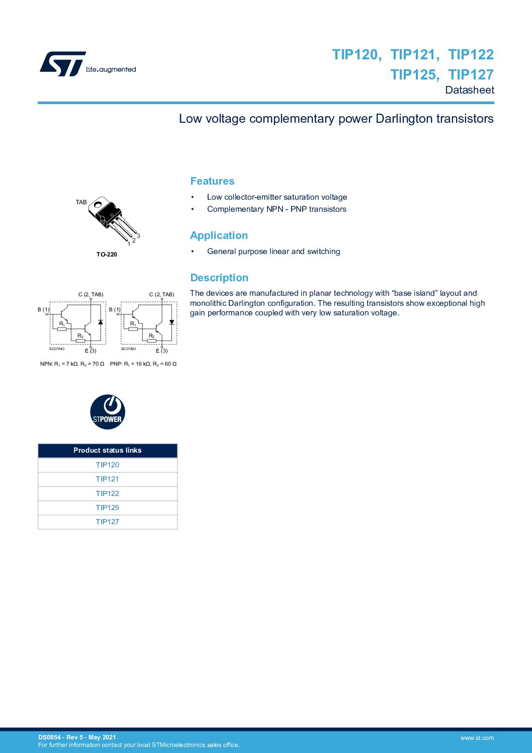دیتاشیت ترانزیستور TIP127 :